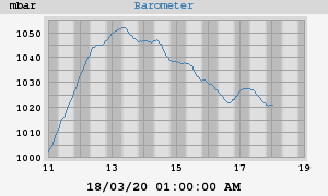 Today's min: 1020.8 mbar at 12:09:04 AM